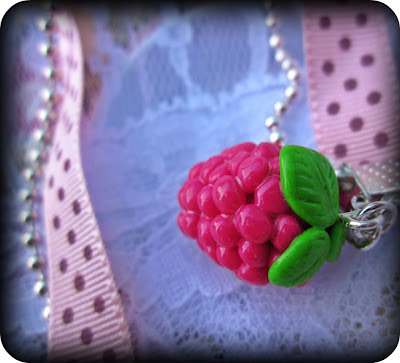 Un petit porte clé avec une religieuse en fimo, et un bracelet décoré d'une breloque framboise que j'ai également réalisé en fimo. Vous aimez?